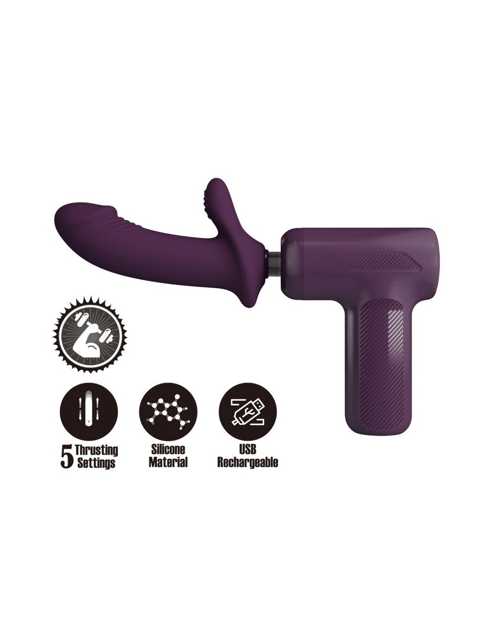 Esta pistola de masaje súper potente tiene 5 configuraciones de empuje y un cabezal de silicona reemplazable. Lo más importante es que el motor más potente dentro de la pistola de masaje te brindará la experiencia erótica más poderosa y una vibración increíble y una sensación de empuje. Si prefieres que tus juguetes tengan características poderosas, elige la última pistola de masaje súper poderosa de Pretty Love, resolverá y liberará todo tu estrés y te brindará un placer impresionante y grandioso.